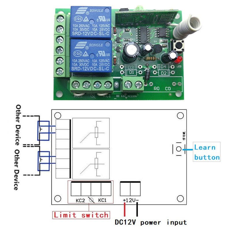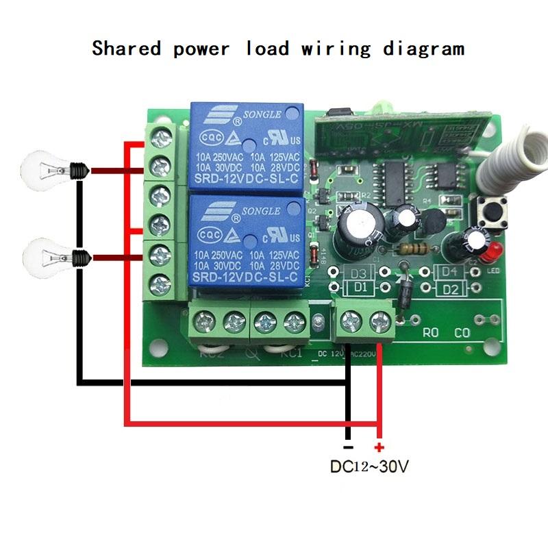 Interruptor de control remoto inalámbrico Universal Dc 12V 2Ch Módulo receptor de relé con transmisor remoto Rf 433 Mhz