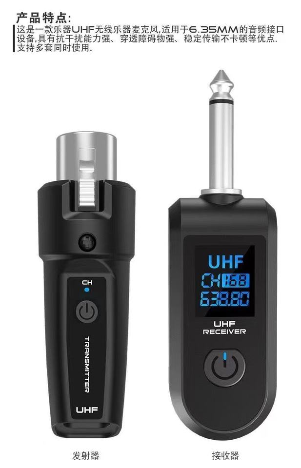 ダイナミックマイクギター用ワイヤレス送信機および受信機システム、48kサンプリング周波数