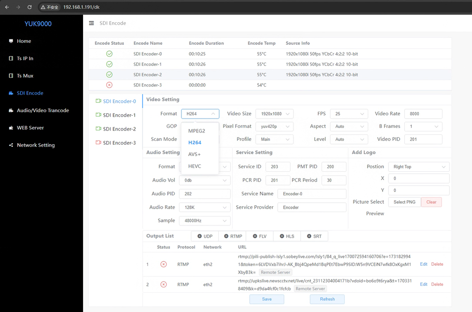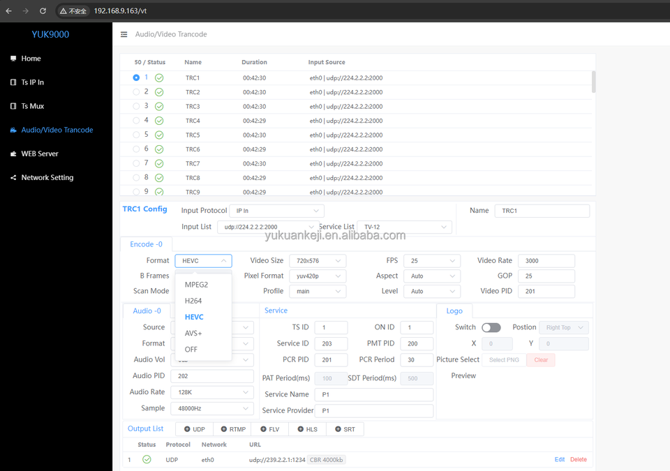 YUK9000 Multichannel Encoder Transcoder Servidores IP Video H.264 para DVB, IPTV y OTT TV