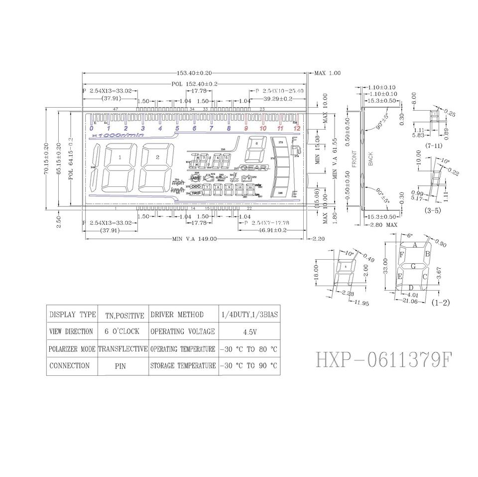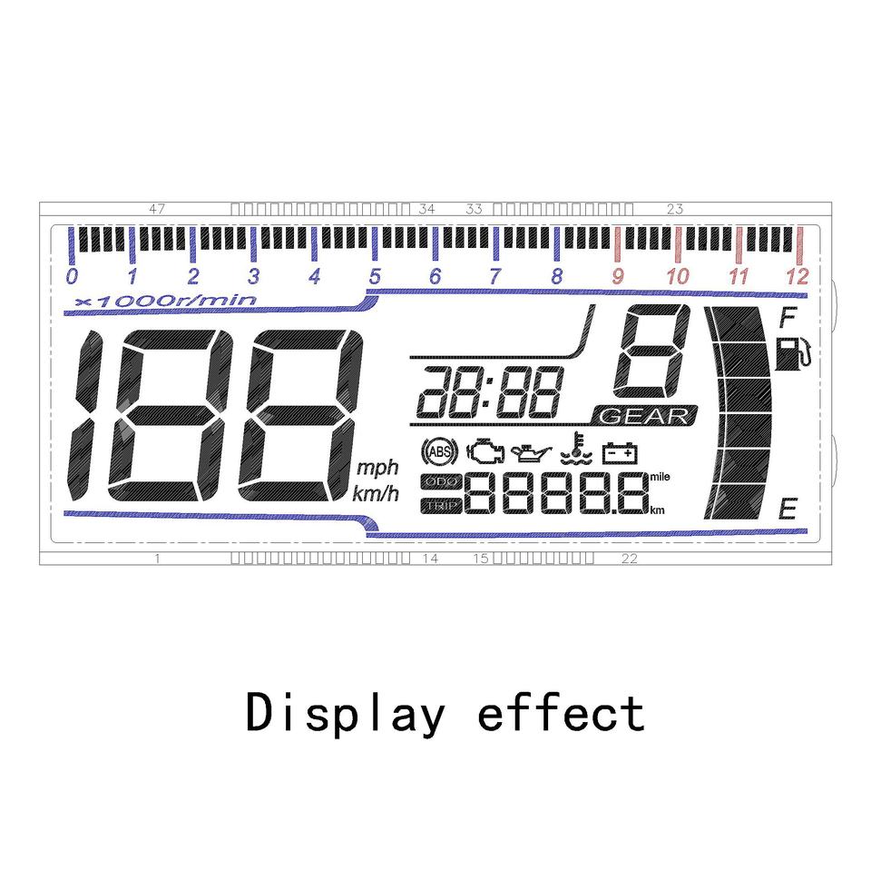 Segmento personalizado de alta calidad LCD HTN Pantalla LCD positiva para motocicleta 5,0 V monocromo antideslumbrante 7 segmentos LCD