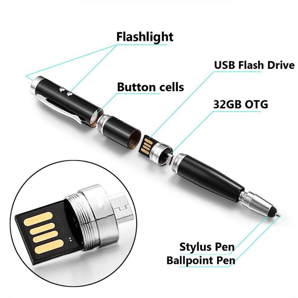 Đa Chức Năng Công Cụ Bút Laser Con Trỏ Kim Loại Ổ Đĩa USB Bút Bi Bút